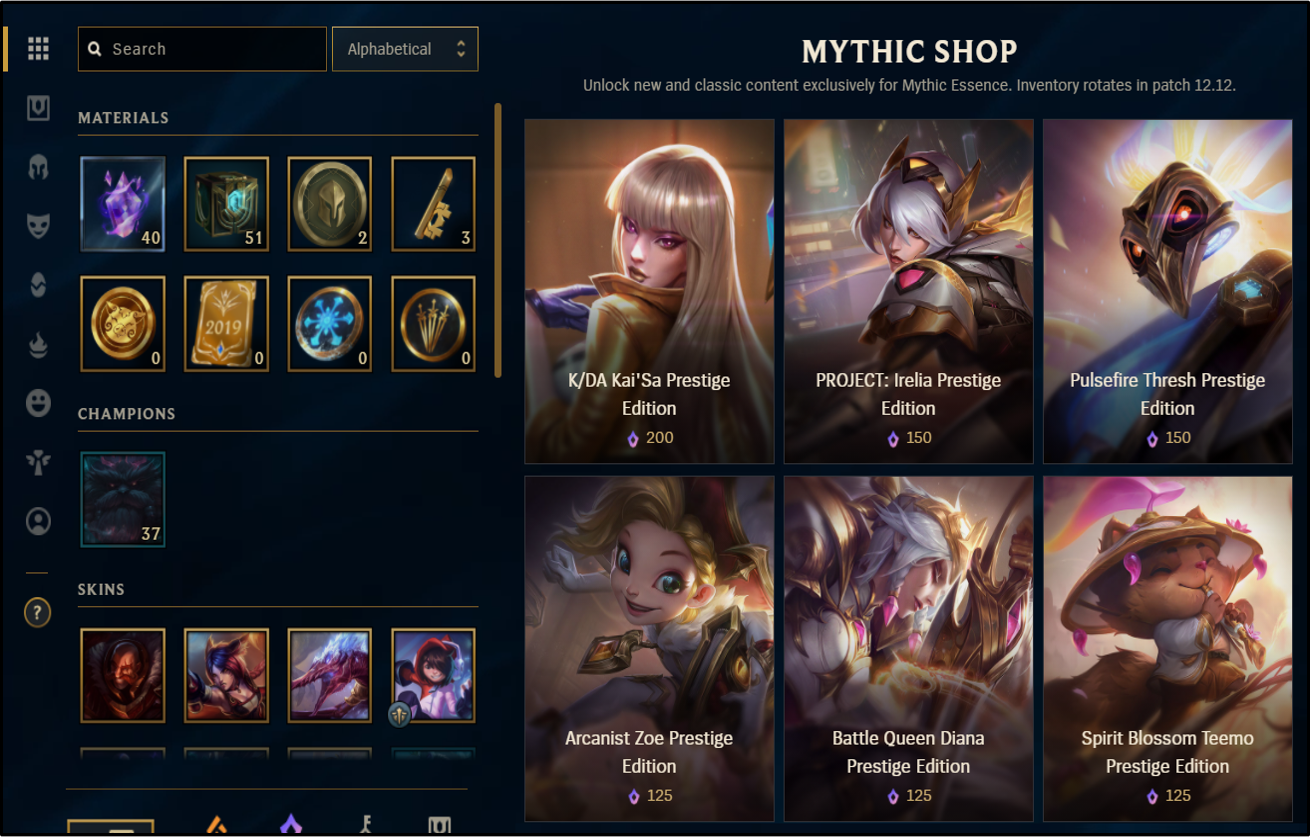 신화급 스킨, 프레스티지 스킨을 획득할 수 있는 새로운 상점이며 롤 클라이언트 및